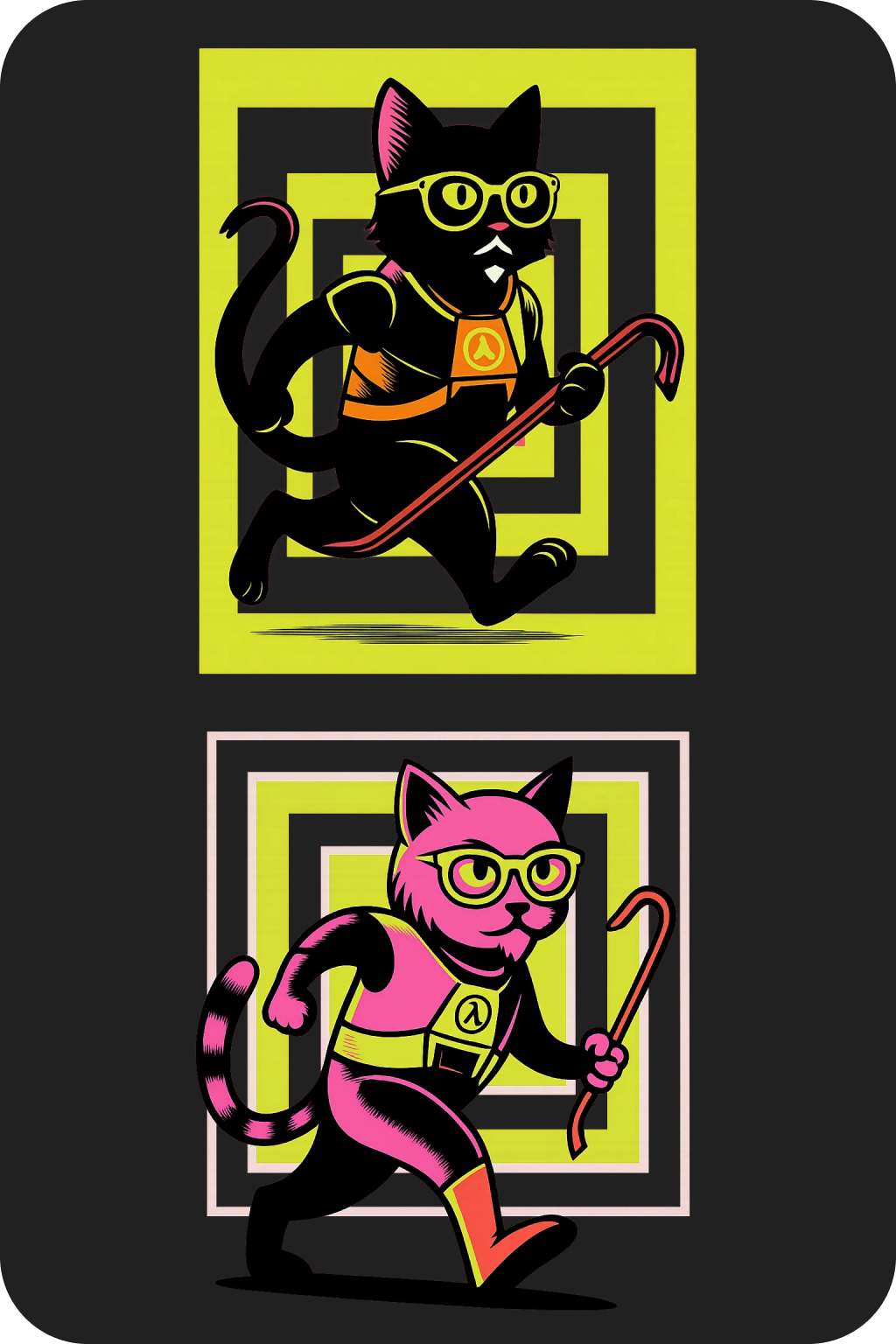 Кот в образе Гордона: силуэт кошки с очками, бородкой и монтировкой в лапе, бегущей на задних лапах. Идея данного персонажа отсылает к названию форума его тематике, и прочим составляющим форума\комьюнити.Метафорично - представляет ловкость в разработке, как кот. А HEV-Костюм его неотъемлемый атрибут, как для кодера среда разработки.
